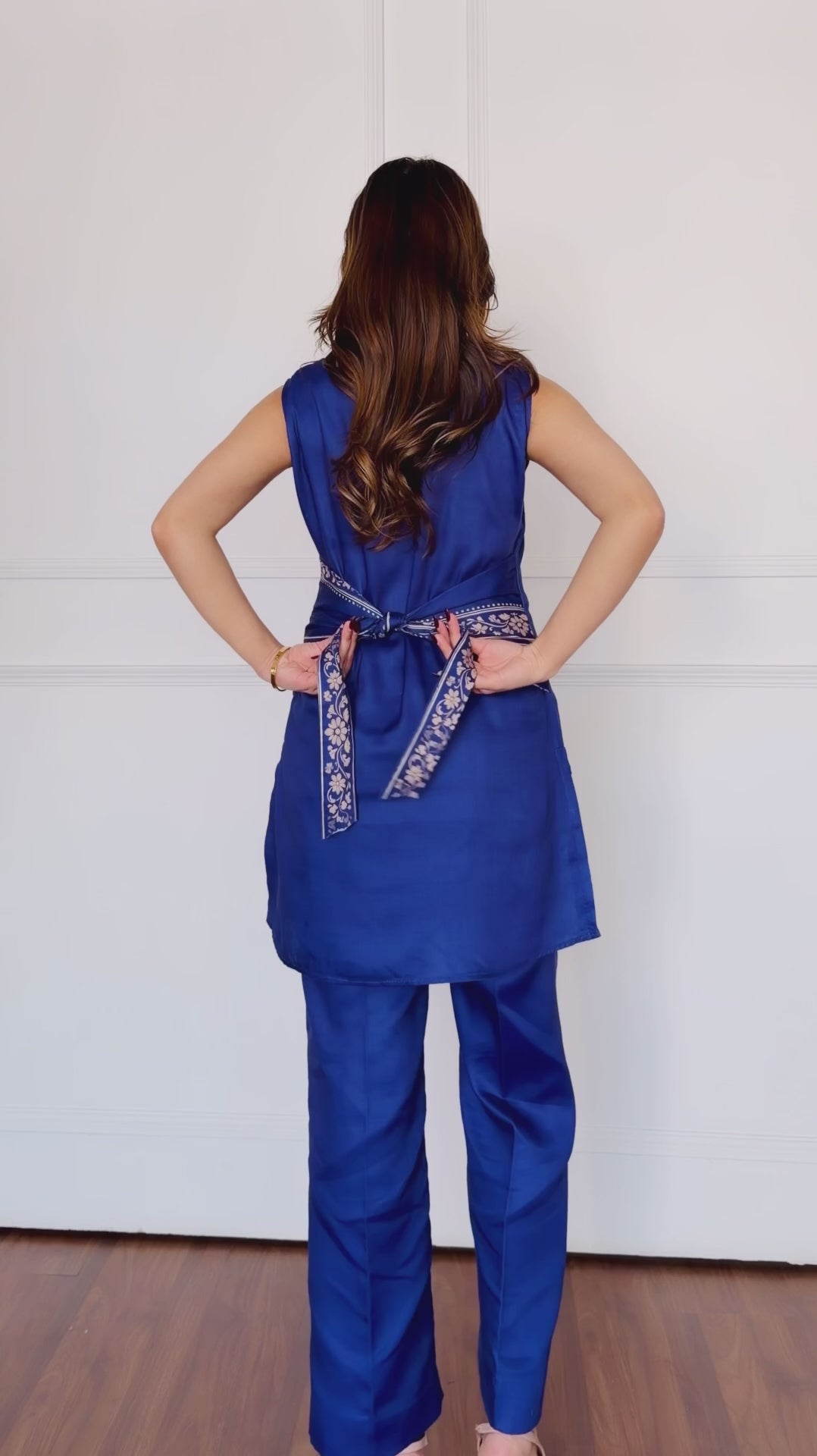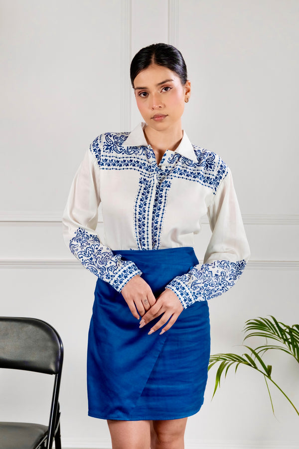 Crafted in lustrous ivory satin, this elegant skirt set is a celebration of timeless craftsmanship and modern grace. The ensemble features delicate hand embroidery, intricately placed to create a soft, luxurious texture that elevates the minimalist silhouette. The fluid satin skirt drapes beautifully, offering effortless movement.Perfect for festive evenings, intimate celebrations, or elegant day affairs, this ivory skirt set blends understated glamour with handcrafted charm — a versatile piece designed to make you feel refined, radiant, and effortlessly chic.
